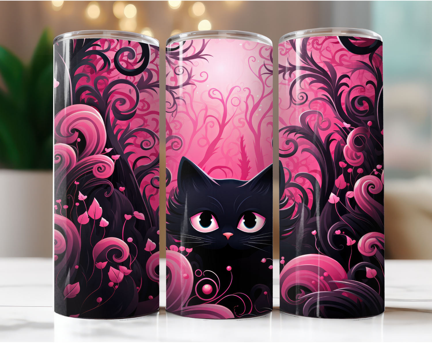 Black Cat Pink Background