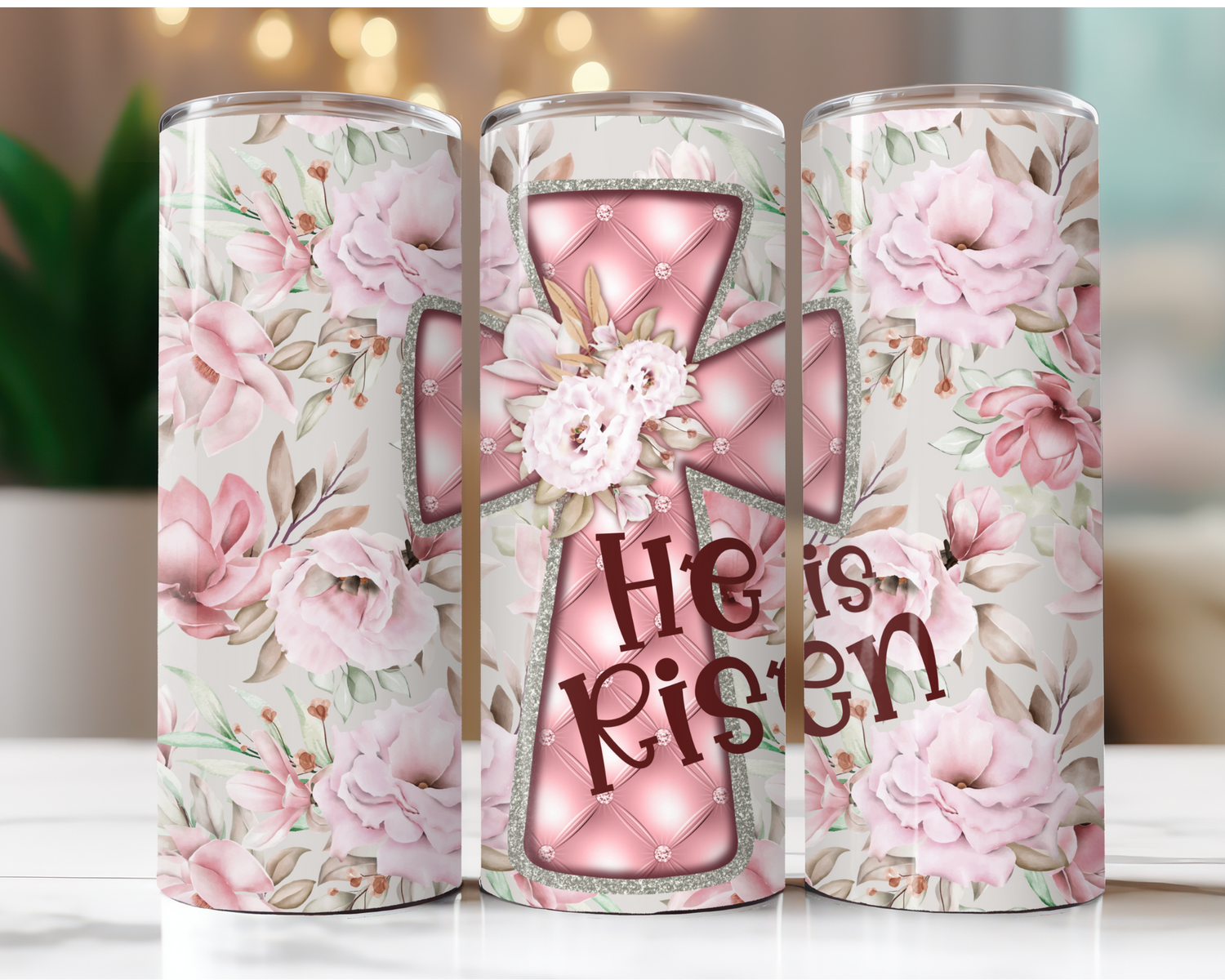 He Is Risen Pink Cross