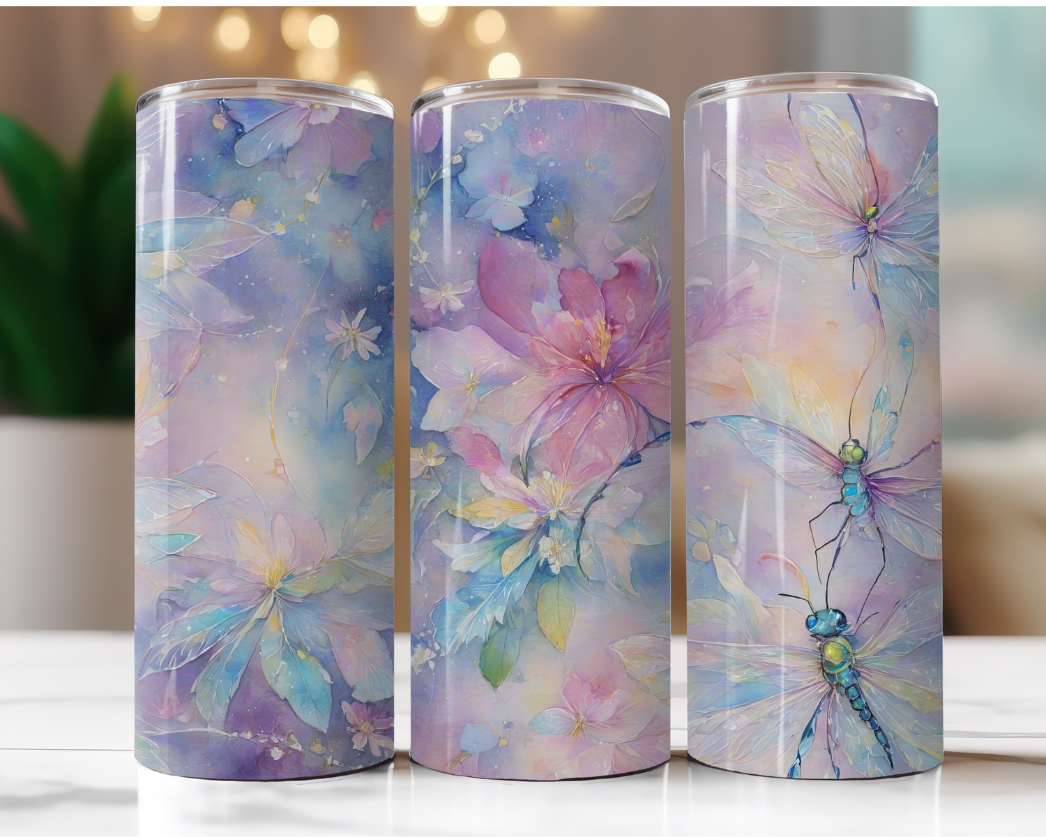 Pastel Flowers and Dragonflies