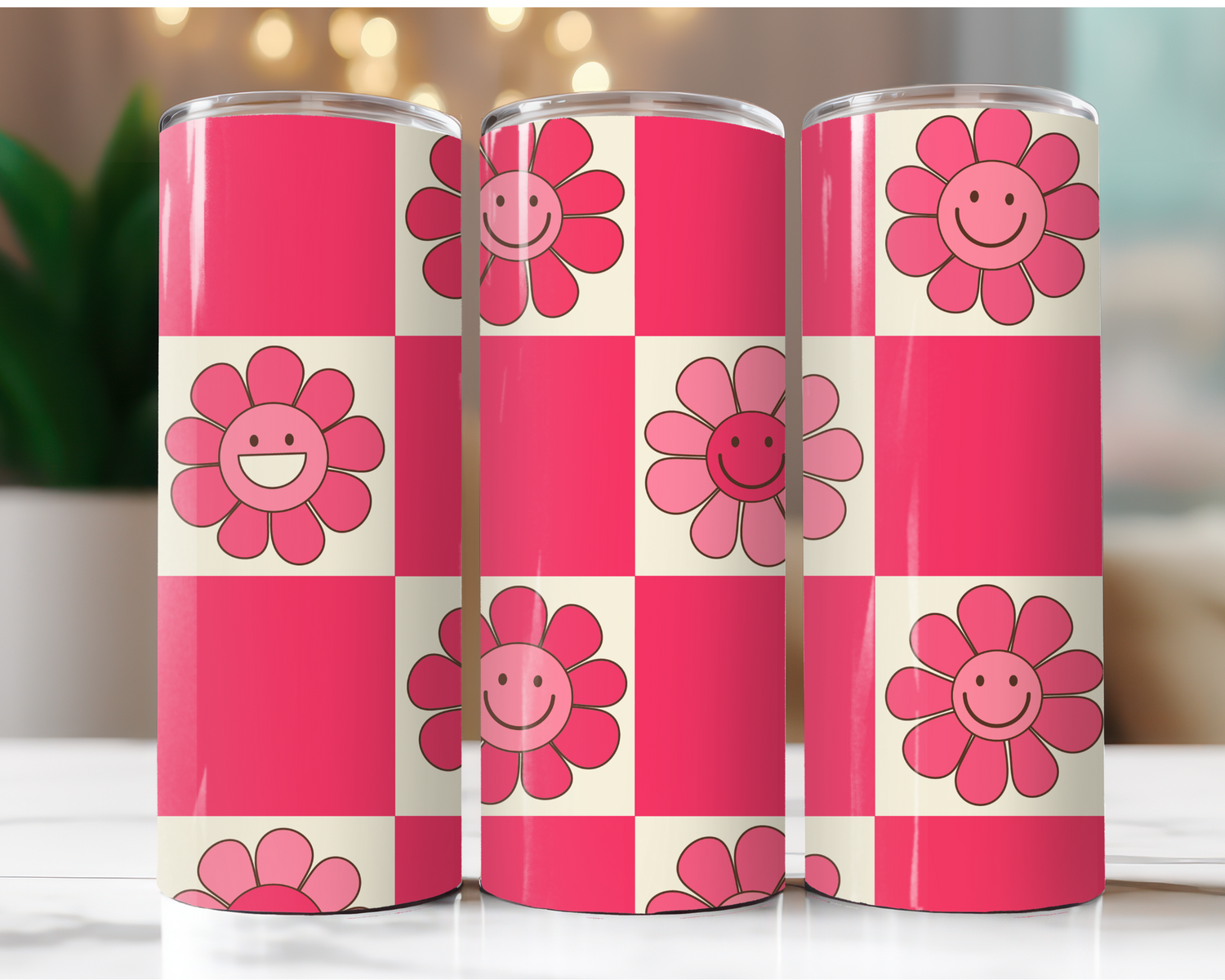 Pink Checkered Smiley Daisies