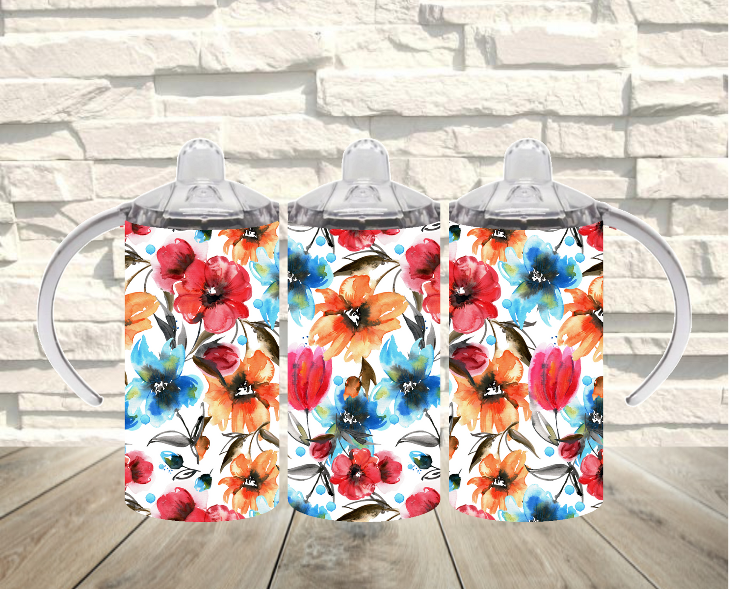 Prink, Orange, and Blue Flower Sippy Cup