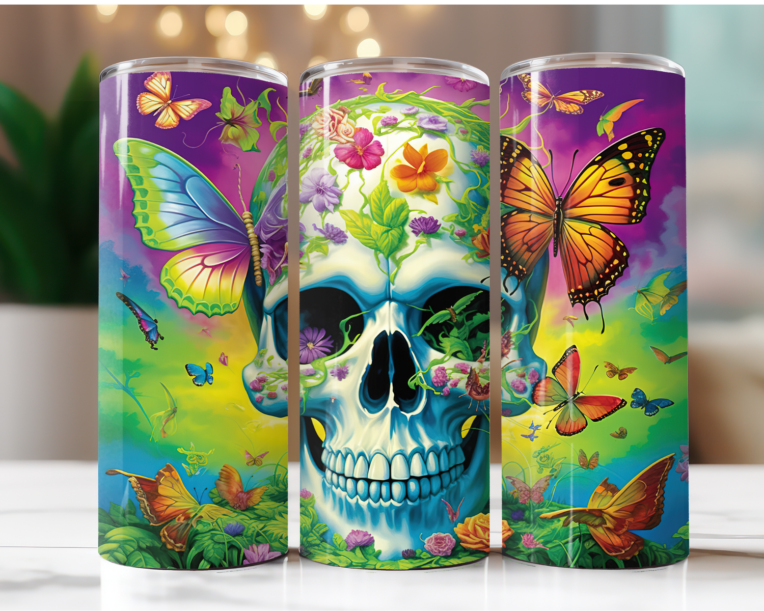Skull with Butterflies and Flowers